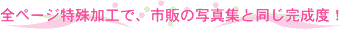 「陶芸」・「ガーデニング」・「ピアノ、日舞、バレーの発表会」・「子供の絵画集、イラスト」・「CGの記録」・「クラス会」・「ゴルフコンペ」・「自分の写真集」・「カップルの写真集」・「旅行記念」「誕生日」・「ひとりでおつかい」・「友情アルバム」・「入学式」「卒業式」・「成人式」・「作品集」など・・あらゆる思いでを写真集にして、本棚に飾りましょう。