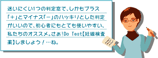 | !ドゥーテスト・hCGプラス《妊娠検査薬》は免疫学的技術を採用した検査薬で、産婦人科で使用しているものと同じように精度が高く、信頼できる検査薬として女性達の心強い味方となっています。ロート製薬株式会社はこの《妊娠検査薬》をいち早く一般市場に広めて大きな話題を呼びました。 |
