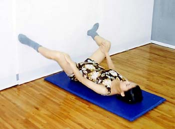 息を吐きながら恥骨を上に引き上げるようなイメージで腰を丸めます。息を吸いながら元の姿勢に戻します。
