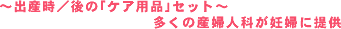 | 〜再使用せず清潔で安全〜 出産時から退院まで確実に対応 |